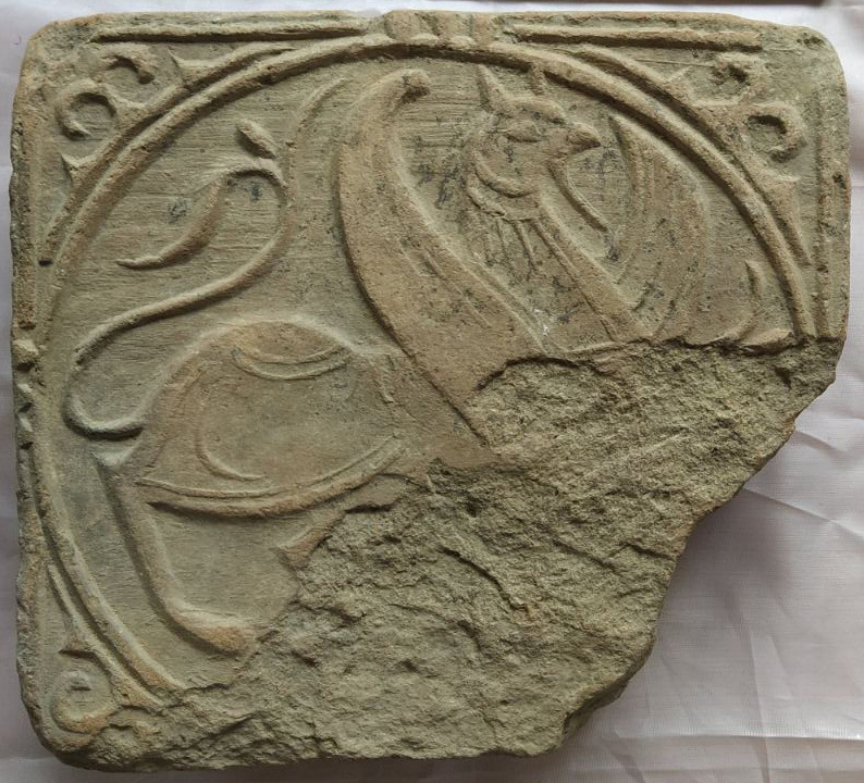 Грифон у візантійському мистецтві символізував Христа. Його подвійна сутність (лев і орел) означає людську і божественну природу. Така інтерпретація найбільш імовірна, особливо якщо взяти до уваги жовте (золоте) тло полив′яних плиток (у випадку зображень грифонів на підлозі), чи їхнє розташування у колах в оточенні символів Богоматері – крин (лілея).