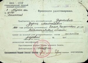 Тимчасове посвідчення прийняття на військовий облік Зараха Мойсейовича Зараховича (1890-1952)